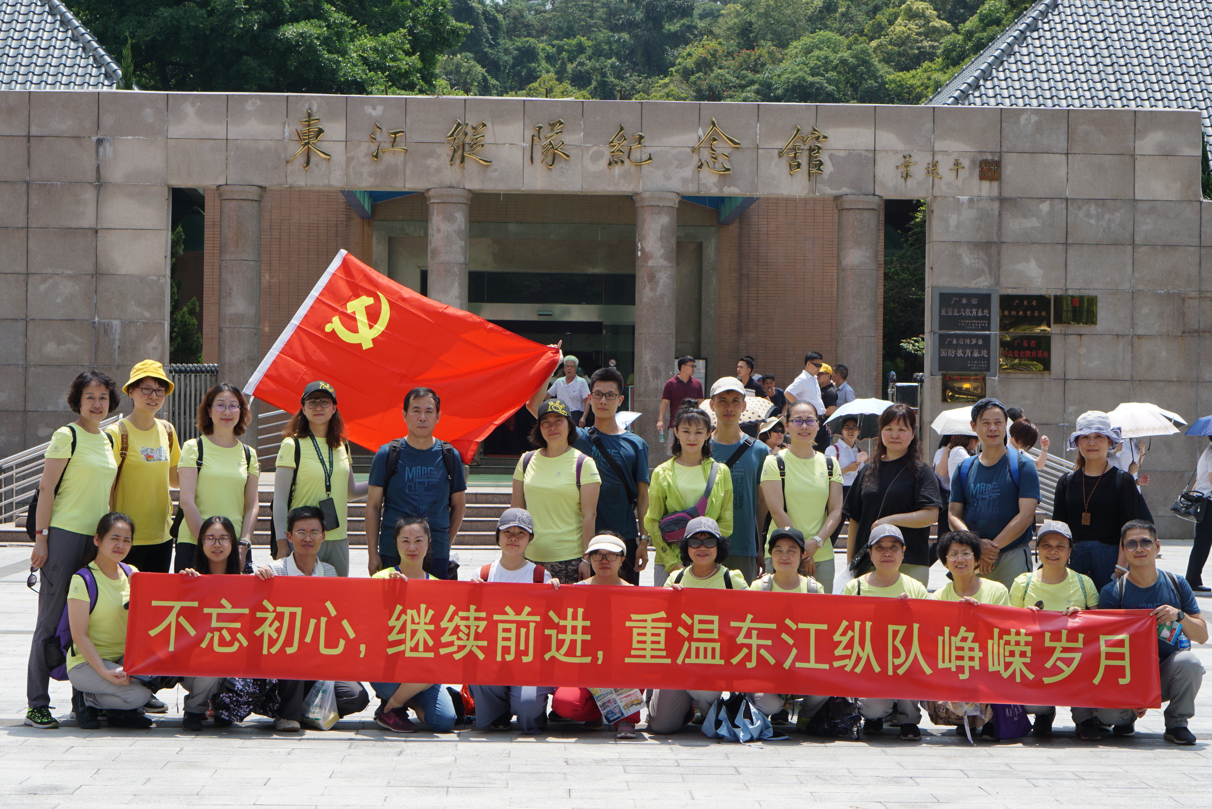 活动当天,大家先参观了罗浮山脚下的东江纵队纪念馆,重温东江人民英勇抗战的革命历史,追忆革命先烈们的光荣事迹。参观结束后,组织大家开展徒步活动。徒步活动中,共有八名教职工克服困难,以坚忍不拔的精神登上了罗浮山顶峰——飞云顶。
