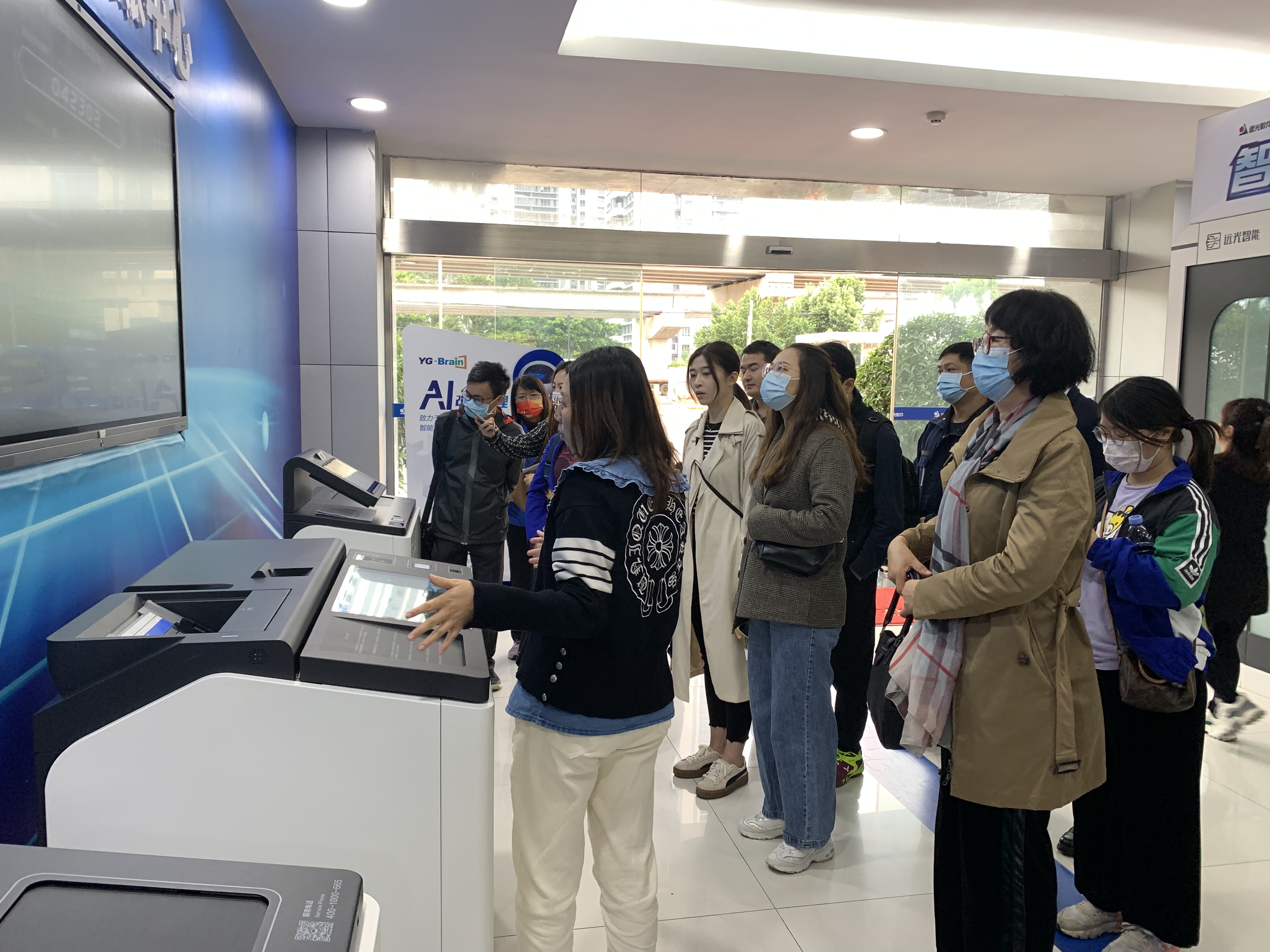 了解完远光公司的历史后,大家来到远光公司的办公楼。刚走进办公楼,大家便看到两旁摆放着几台精密的设备。业务演示员介绍,这些设备是公司自主研发的智能报账终端、智能凭证分类整理等设备。业务演示员现场模拟演示了报销业务操作。报销审核一体机扫描票据后,可智能识别票据信息等数据,从源头便可筛选出不符合要求的相关票据,极大减轻人工审核工作;收单数据可在终端显示,如各交单地点、报销类别等详细信息。一系列的操作演示和业务讲解,使大家深深感受到智能终端技术带来的便利:大大提高审核效率的同时,能更精准地处理财务单据,做到了质与量的提高。