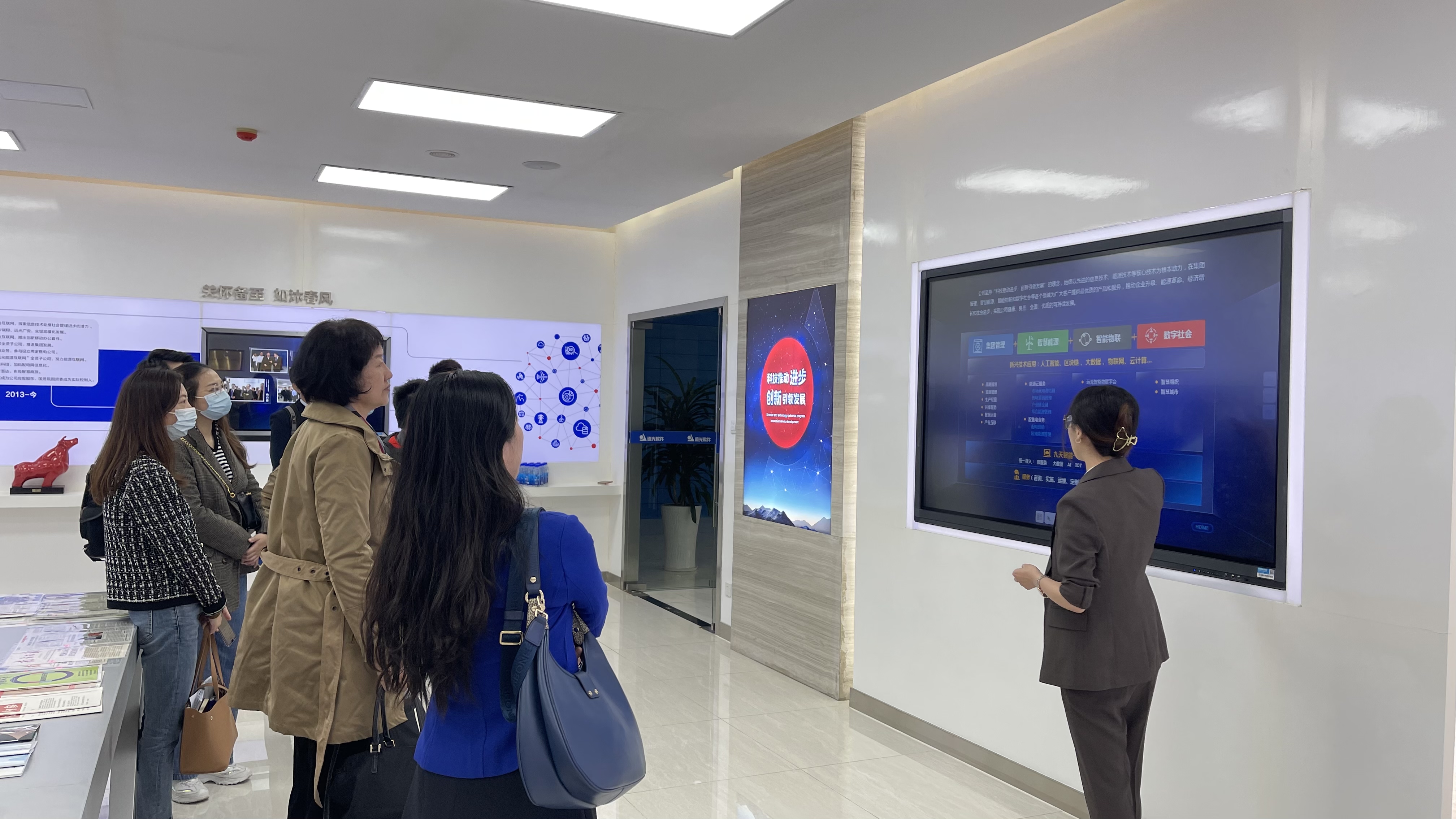 首先,夏总监和王总监带领大家参观了远光大厦一楼的产品展示厅,并对远光集团的发展历史、公司文化、产品研发成果、重点工程项目及各项荣誉资质等进行详细介绍。远光软件股份有限公司总部位于珠海科技创新海岸远光软件园,是一家集研发、运营于一体的管理软件及服务的主流供应商,与国家电网,南方电网等多家大型集团建立长期合作关系,是科技部认定的国家重点高新技术企业,随着互联网时代的到来,该企业加大对IT 技术研发的投入,坚定地走上创新的道路。